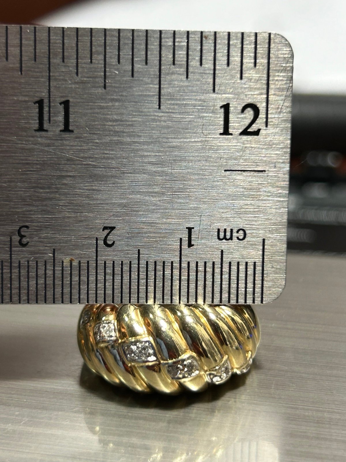 14k solid yellow gold diamonds textured chunky wide dome band ring Sz8.75 vintage fine jewelry
