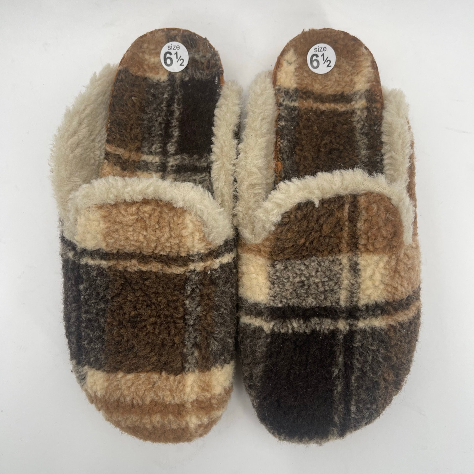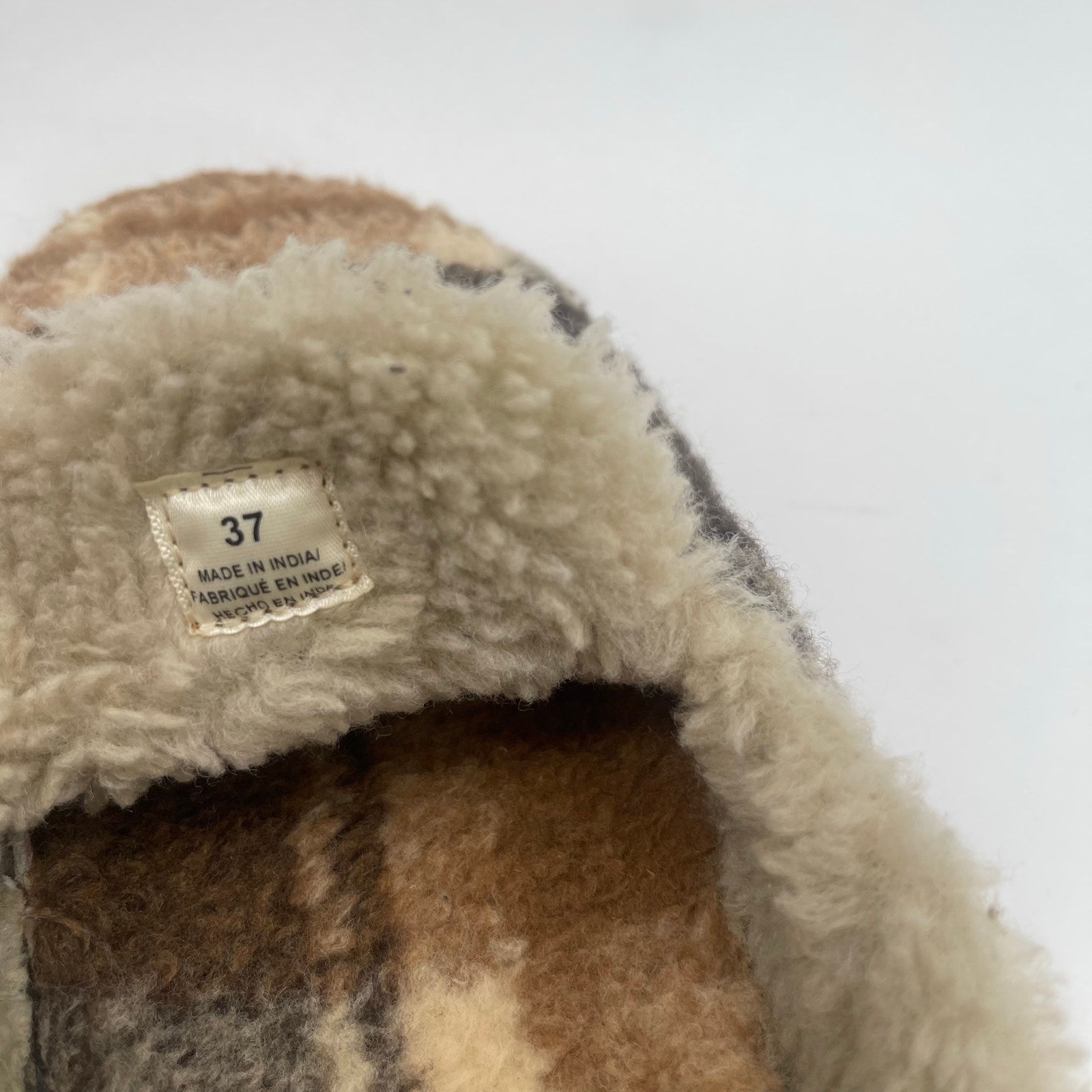 FREE PEOPLE Shoes 37 (US 6.5) Damon Faux Shearling Plaid Cabin Cozy Mule Flats Slippers