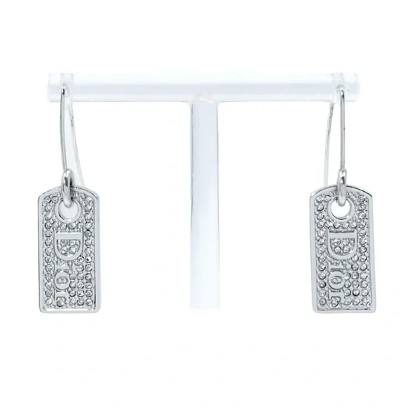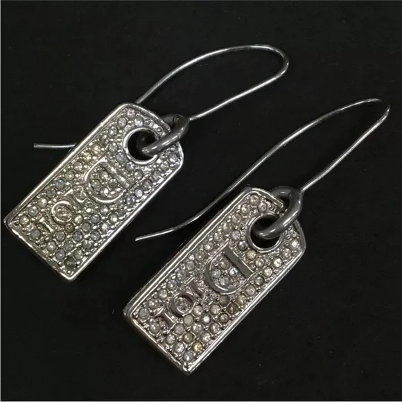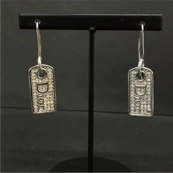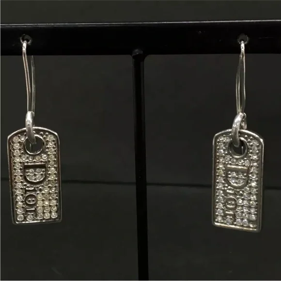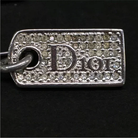 Christian Dior Dog Tag Silver Tone Crystal Drop EarringsThis item is in very good condition aside from minor pitting and slight scratches - As pictured. Please note: These are vintage, Pre-owned items. Normal signs of wear should be expected. I do my best to reflect this in the pictures. Please assess thoroughly before purchasing. I’m happy to provide more images on request. All items are final sale, no returns. Happy shopping :)#dior #diorearring