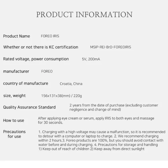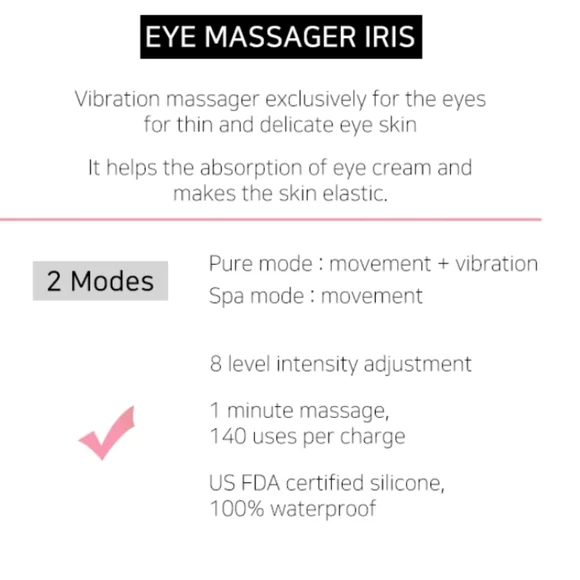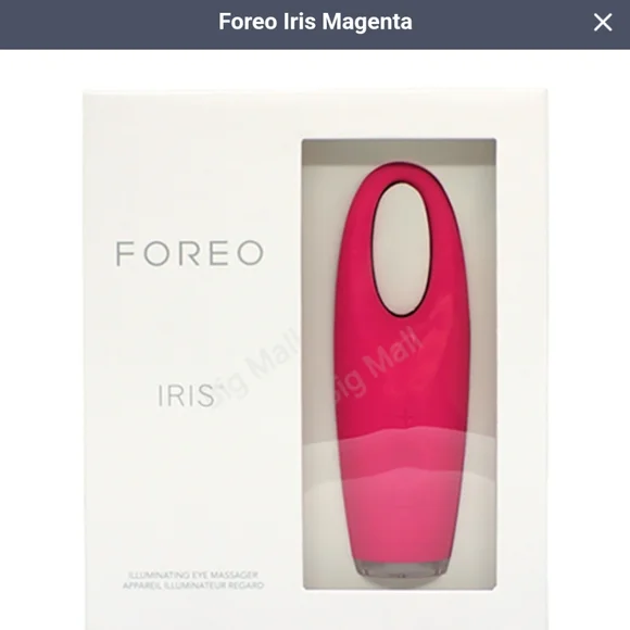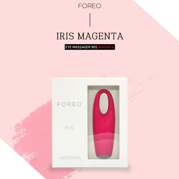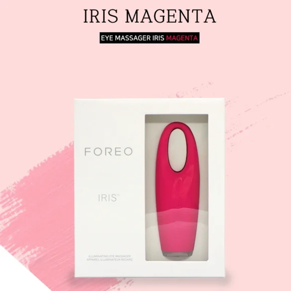 ForeoIris Magenta (deep pink)Ultra Hygienic non-porous silicone prevents bacteria buildup and transfer.Retails for $149 The uniquely designed IRIS eye massager utilizes alternating T-Sonic technology to reduce the visible signs of crow's feet, dark circles, and bags under your eyes. IRIS also dramatically improves the absorption and efficacy of your favorite eye cream or serum.LOOKS ARE EVERYTHING: Fatigue and stress weigh heavily on the delicate skin around your eyes, where the first signs of aging are most evident. IRIS uses Alternating T-Sonic technology to diminish the appearance of dark circles, bags under the eyes, and fine lines that add unwanted years to your face. For brighter, younger-looking eyes, IRIS is a must-have accessory.NWT. New in box.