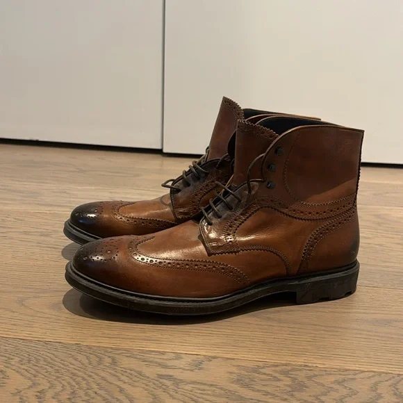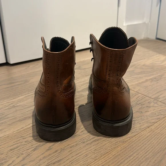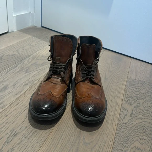 To Boot New York Burnished Wingtip Boot Men’s Size 11Excellent condition, barely worn. Details & care:Richly burnished leather lends an antique feel to a sharp boot clad in classic wingtip paneling. Lacing grommets switch to hooks at the shaft to further the vintage appeal.Leather upper and lining/leather and rubber sole.By To Boot New York; made in Italy.Men's Shoes.Open to offers.