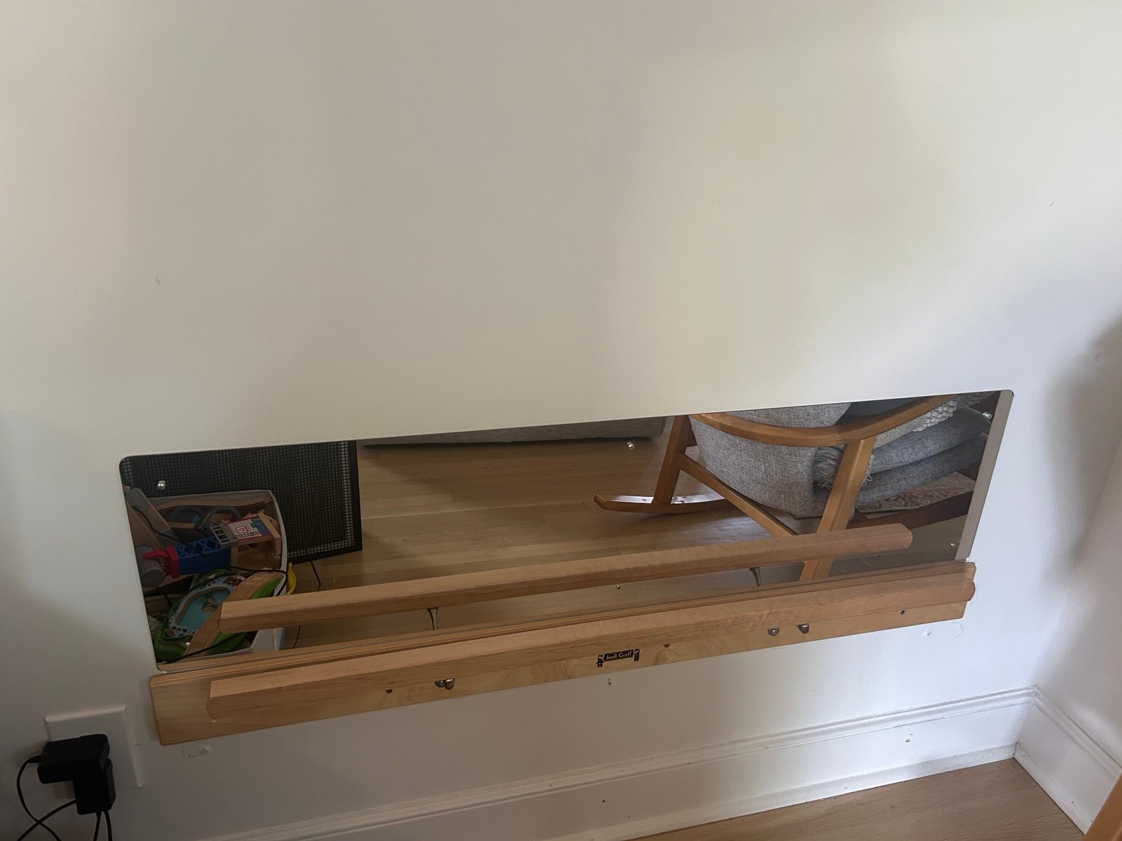 Minor wear/ scratches…DEVELOPS BALANCE & COORDINATION - Allows children to discover their reflections in a shatterproof, distortion-free mirror. Helps develop motor skills, hand eye coordination, and more. Excites babies as they learn to pull up and balance on the rail.