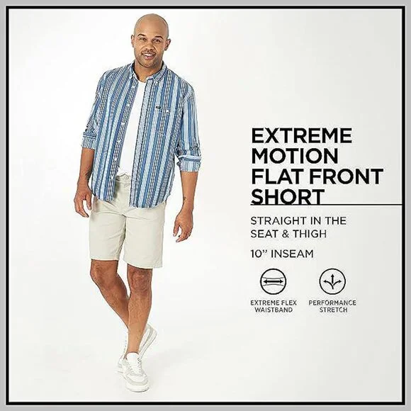 * STRAIGHT FIT. With a straight fit from the seat through the thigh, these khaki shorts feature a flex waistband for comfort in movement. This short hits at the knee and provides a tailored yet casual look that keeps you comfortable all day long. * CLASSIC STYLING. A timeless classic with performance features, these straight fit khaki shorts are perfect for everyday wear. From a casual lunch to a day in the park, these shorts will add effortless style and all-day comfort to any outfit. * LIVE IN COMFORT. The Extreme Comfort Shorts offer work-to-play versatility. Athletic details like mesh pockets, a flex waistband and Active Comfort Fabric are combined with a classic khaki look for maximum comfort and style. * A LIFETIME OF QUALITY. For over 100 years, has produced quality apparel with durability and long-lasting construction in mind. Lee is committed to designing clothing that conforms to your body, allowing you to move through life freely. * SPECIFICATIONS. (2) Front slant pockets, (2) back welt pockets, zipper fly with button closure, 10" inseam. Fabric varies by color.