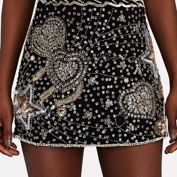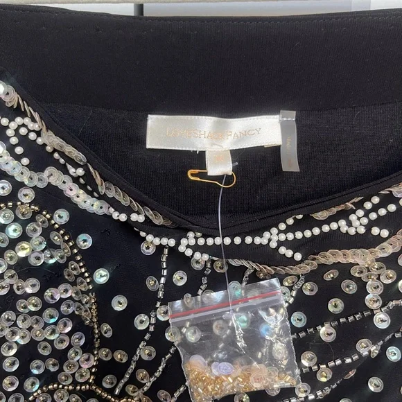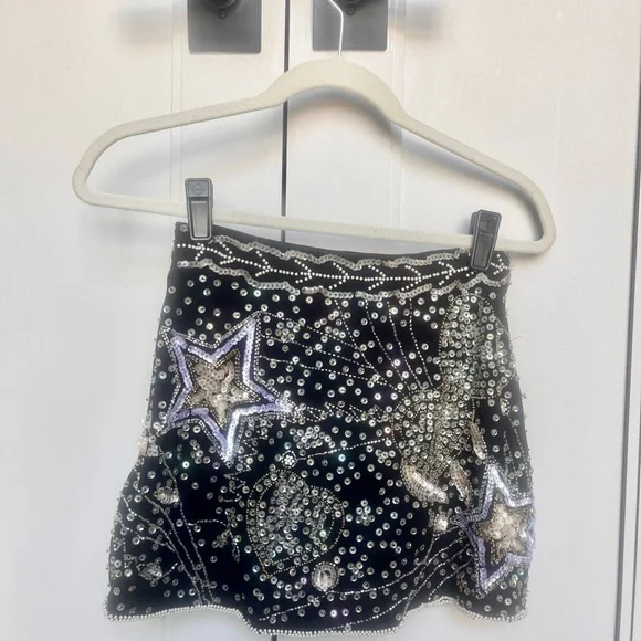 Absolutely stunning mini skirt with incredible sequin details. The original listing was called “Lani skirt” or something to that effect and the original price was quite pricey at around $475. Only worn twice but some sequins fell off- luckily I kept the extra sequins and any additional I found that fell off. She is delicate!