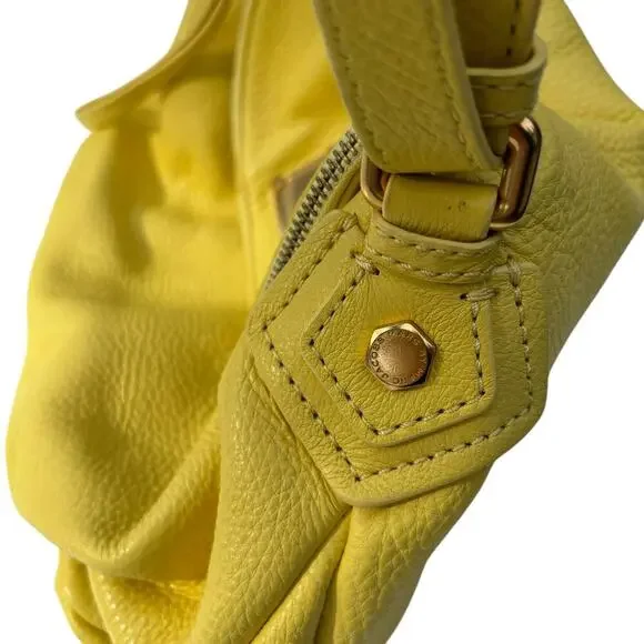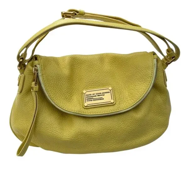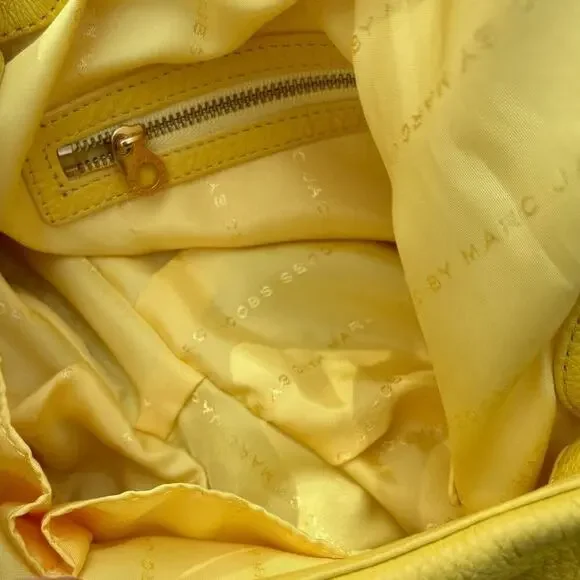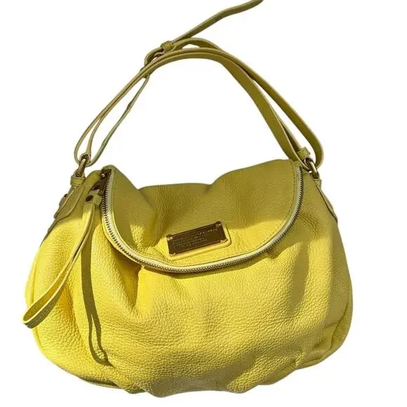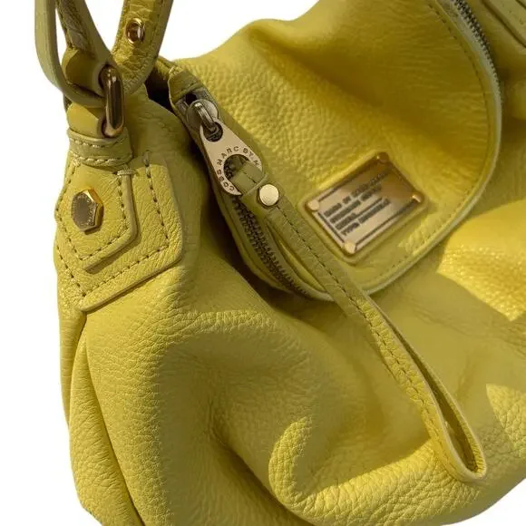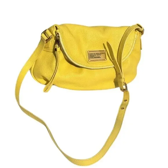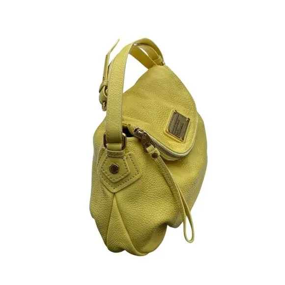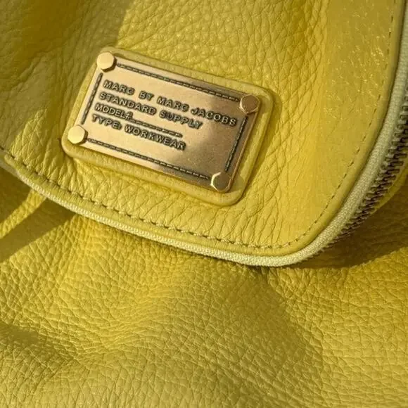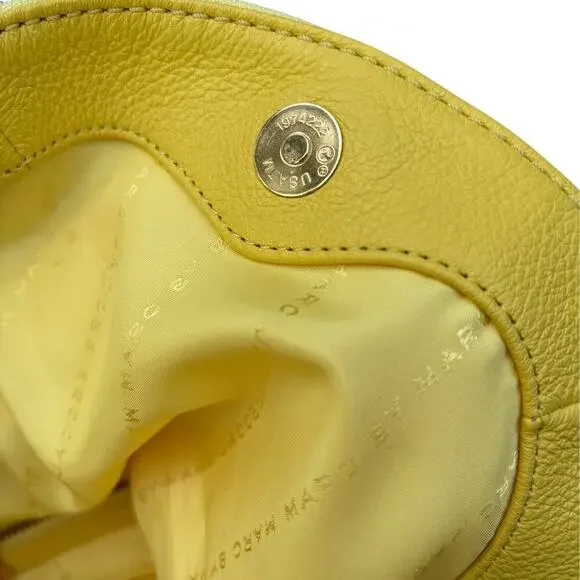 New MARC BY MARC JACOBS Classic Q NATASHA Yellow Leather Crossbody Shoulder Bag Purse100% Authentic MARC BY MARC JACOBSClassic Q Natasha Yellow Colored Leather Crossbody Hobo / Messenger / Shoulder Bag / PurseMSRP $368.00 + taxBRAND: MARC JACOBSCOLOR: YellowDIMENSIONS: 12" W X 10"H X 5" DLong adjustable Cross body shoulder strap with 20" to 24" drop EXTERIOR:Made of yellow pebbled leatherZip pocket within flap to create a deep compartmentOpen top under flap with magnetic snap closureFront Marc by Marc Jacobs signature plaque engraveGold toned hardware INTERIOR:Yellow signature fabric liningTwo Slip pocketsOne Zipper pocketThis bag is in very good condition. It's new and has not been used. No flaws.