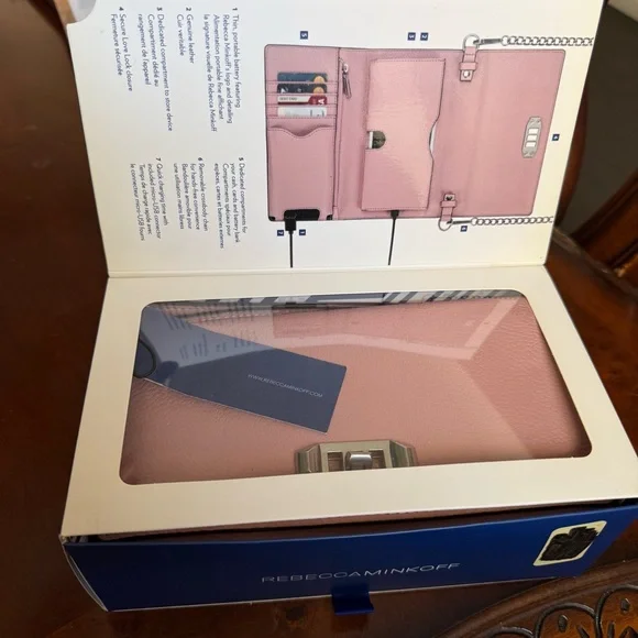 This elegant pink leather phone case by Rebecca Minkoff combines style and protection for your mobile device. Crafted from textured leather, it features a sleek design with silver-toned hardware, offering a modern and sophisticated look. The case is designed with a secure zipper closure, ensuring your phone stays safe and stylish.