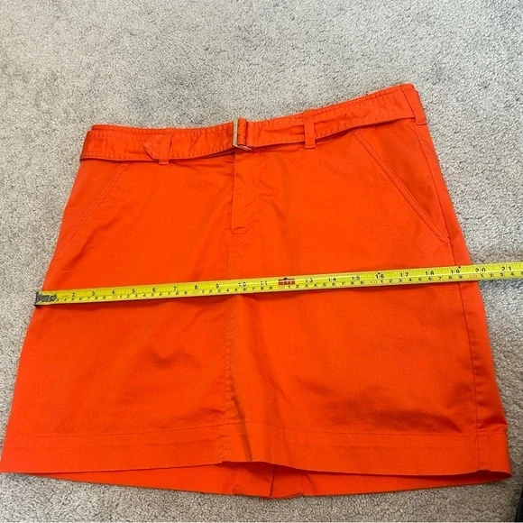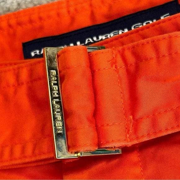 Ralph Lauren golf bright orange belted mini skirt skort Sz 10Excellent used condition. Worn once. Pockets, zipper button closure, belt loops with fabric belt and gold tone hardware that has Ralph Lauren written on it. Shorts attached. May be slight difference in colour due to lighting. Measurements are approximate.Bundle more through my closet to save on shipping.New to ? Earn $15 🤑 When you sign up with my code: Americanglam ➡️Item recorded to prevent switching of product⬅️ 72720234b2/1p