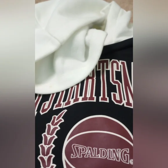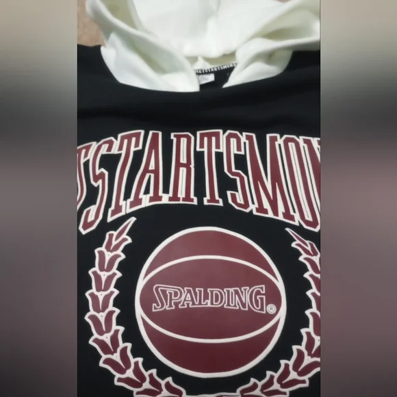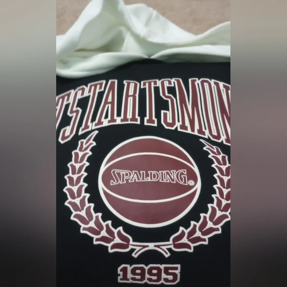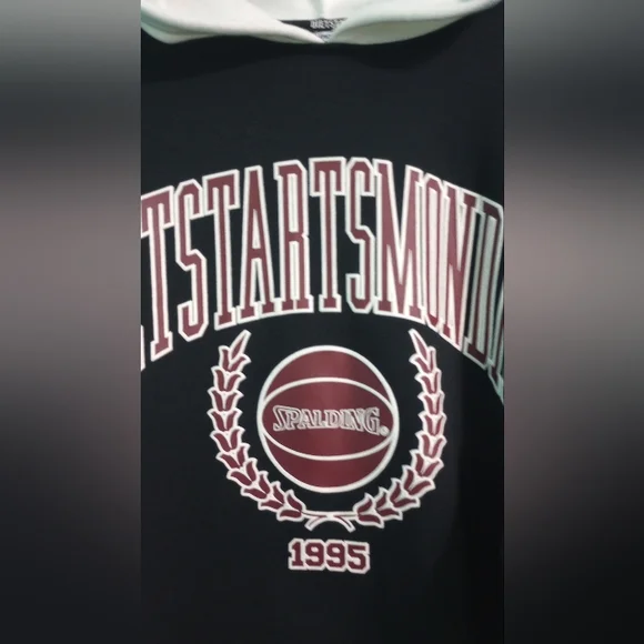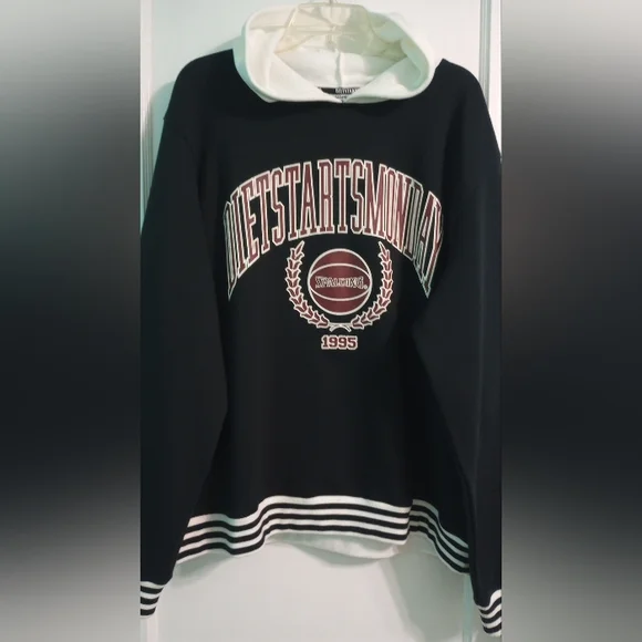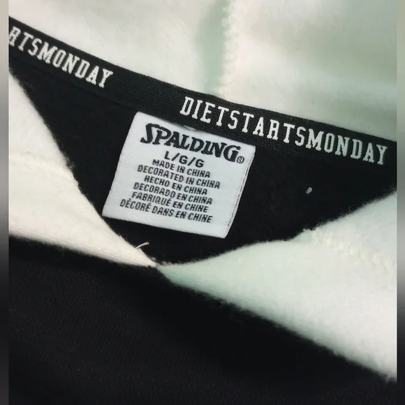 Like New. NWOT- one tiny spot interior hem of hoodie, soil spot may come out when launderedDIET STARTS MONDAY collaboration with Spaulding BasketbalUnisex- Sure!90's baggy retro fitBlack and off white stripped knitcuffs and hemGraphics screen print with puff borders in burgundy and off white (cream/ white)nice quality hoodieApproximate MeasurementsPit to Pit: 25.5"Top of shoulder to hem: 28"