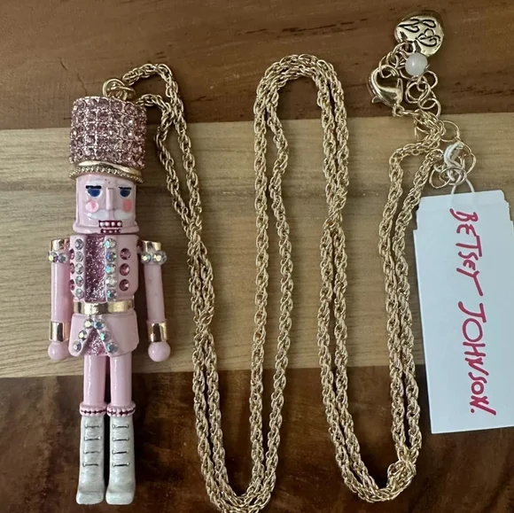 This stunning necklace from Betsey Johnson is the perfect addition to any jewelry collection. With a fun and festive Nutcracker pendant, this necklace is perfect for the holiday season. The pendant is adorned with multicolor enamel and glass stones, and the necklace has a lobster closure.Made with mixed metal and measuring 32 inches with a 3 inch extender, this necklace is sure to make a statement. The pavé setting style adds a touch of sparkle, while the round glass main stone creates a classic look. This necklace is a must-have accessory for any fan of Betsey Johnson or Christmas-themed jewelry.
