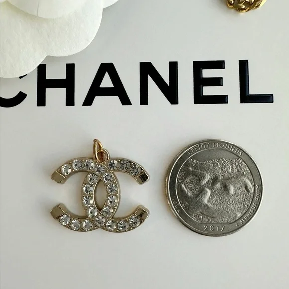 AUTHENTIC CHANEL RHINESTONE CC GOLD TONE ZIPPER PULL PENDANT Excellent Like New Condition100% AUTHENTIC CHANEL ZIPPER PULLApproximately 22mmStainless steel 18” cuban chain included Non tarnish high quality chain NOT PART OF CHANEL’S BOUTIQUE JEWELRY LINEZIPPER PULLS AND BUTTONS ARE MADE FOR CHANEL BAGS AND CLOTHINGI am not affiliated and/or associated with any of the brands, brand owners, or trademarks. All logos and trademarks remain the sole property of the brand