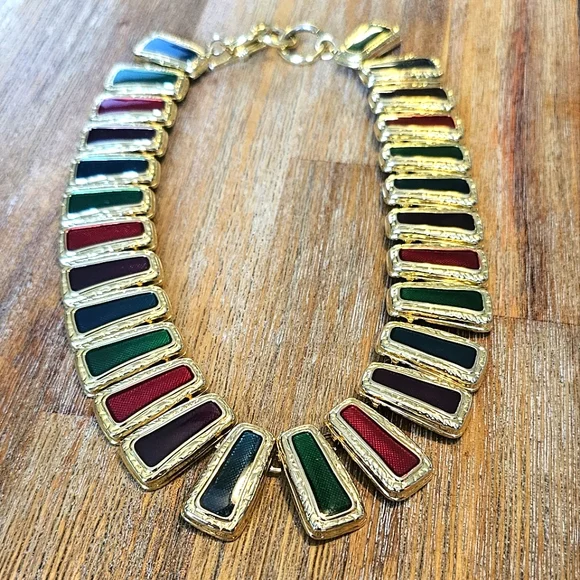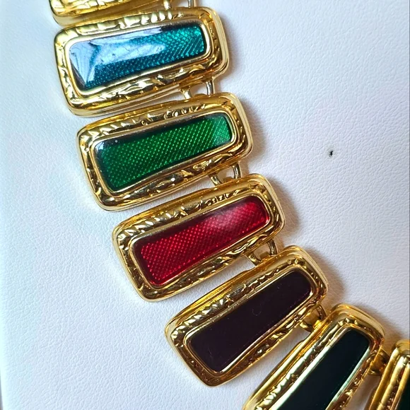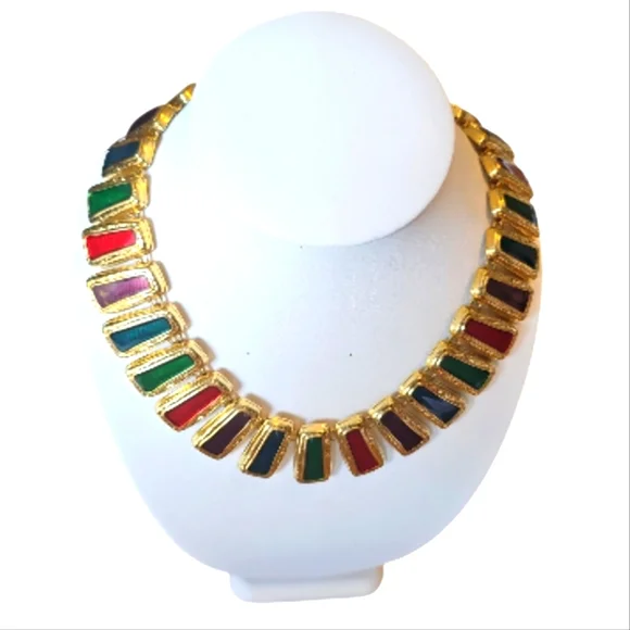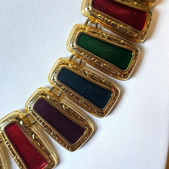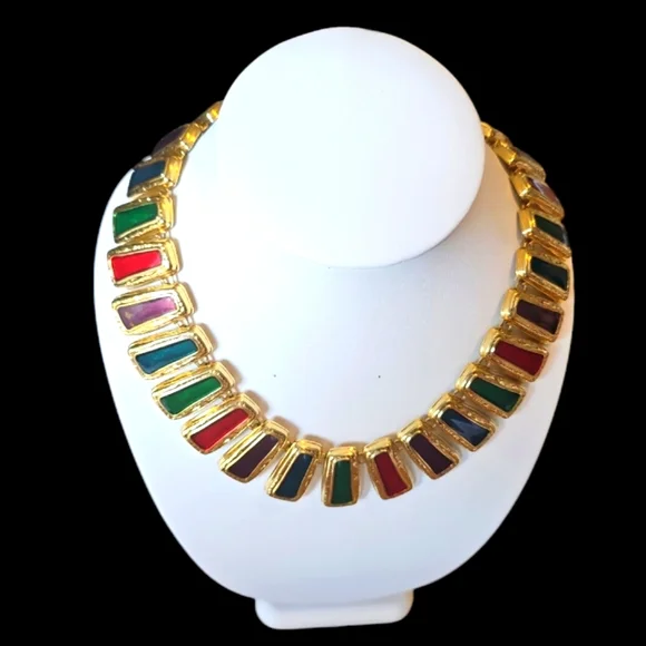 Item Description ***Make this Unique & Rare and Statemen piece Byzantine Style Ruby, Sapphire Enamel Gold Necklace part of your Jewelry Collection.***This Unique Necklace is the perfect gift for your most important person in your life.***This is a Statement piece and will make everyone look at you in any type of setting.***Condition:Vintage. Excellent.***Gold Plated: Yes.***Quantity:One.***Color:Gold.Green.Red.***Closure:Togle." Necklaces 121** "